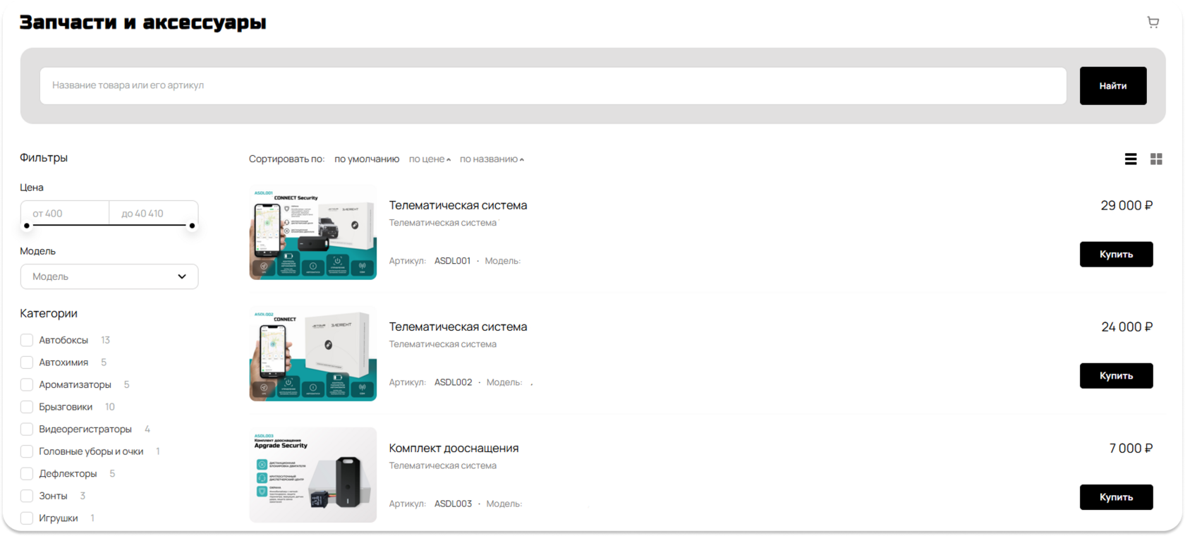- Автоматически загружать аксессуары и запчасти в модуль аксессуаров и з.ч.